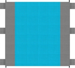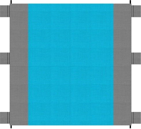 Šesť vreciek nasypete pieskom, rohové oká ukotvíte priloženými kolíkmi – podložka zostane pevne na mieste aj pri nárazoch vetra.