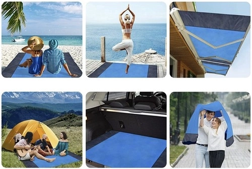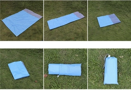 Premyslené detaily zaistia pohodu kdekoľvek: 6 praktických vreciek nasypete pieskom pre zaťaženie, rohové oká s kolíkmi udržia podložku na mieste aj vo vetre a ľahký cestovný obal so sťahovaním uľahčí prenášanie.