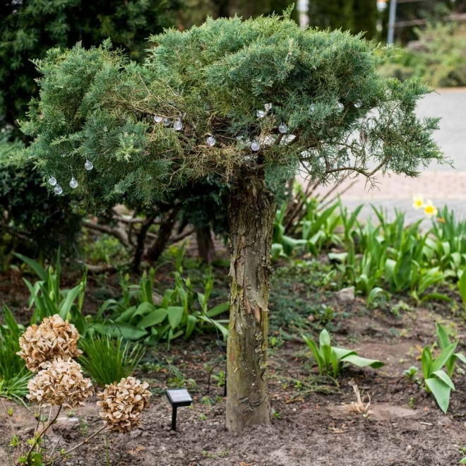Jednoduchá inštalácia vďaka solárnemu panelu s kolíkom umožňuje rýchle umiestnenie a automatický senzor súmraku sa stará o ideálne spustenie. Svetlá svietia až 7 hodín na jedno nabitie.