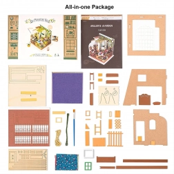 Táto prepracovaná DIY miniatúra premení váš voľný čas na príjemný tvorivý zážitok. Stavebnica obsahuje predrezané diely z preglejky, papierové potlače, textilné a kovové prvky, farby aj lepidlo. Vďaka LED osvetleniu vyniknú všetky detaily a hotový model sa stane štýlovou dekoráciou na poličku či do pracovne.