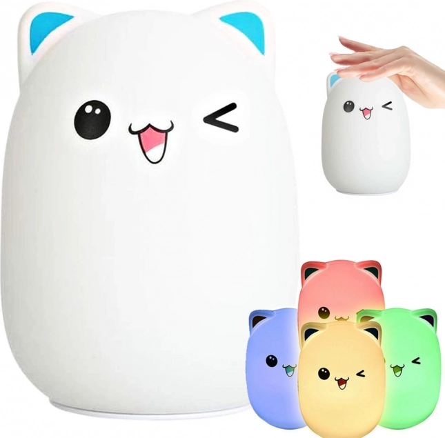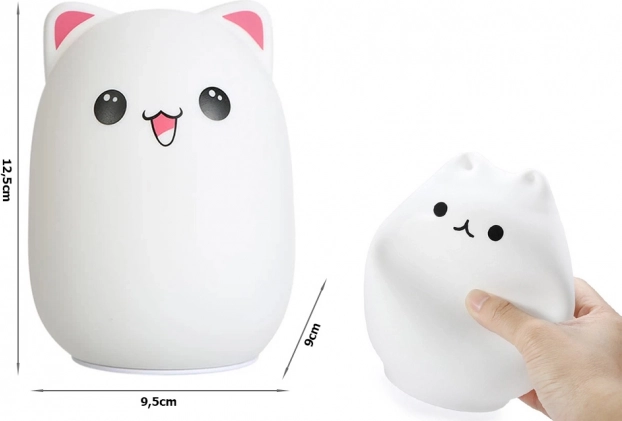 Táto roztomilá mačacia lampička je vyrobená z mäkkého, na dotyk príjemného silikónu, ktorý je pevný, odolný a bezpečný pre deti. Vďaka kompaktným rozmerom sa perfektne hodí na nočný stolík aj do detskej postieľky. Lampička jemne svieti a pomáha deťom pokojne zaspávať bez strachu z tmy.