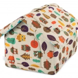 Domček má ľahko vyberateľnú vložku, ktorú je možné jednoducho čistiť, a strecha je pripevnená pomocou zipsu, čo prispieva k jednoduchému zloženiu a prenosnosti. Dizajn s farebným motívom sovy dodáva domovu hravý a dekoratívny prvok.