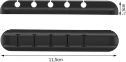 Rozmery 11,5 × 1,5 cm šetria miesto, zatiaľ čo pružný plast šetrne fixuje káble do priemeru 5 mm. Držiak je nenápadný, ale maximálne účinný.