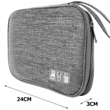 Tento praktický organizér na elektroniku pomôže skrotiť káble, nabíjačky, powerbanky aj adaptéry. Vnútorný systém elastických popruhov a sieťovaných vreciek udrží všetko pevne na mieste a prehľadne usporiadané. Kompaktné rozmery 24 × 17 × 3 cm zabezpečujú, že sa zmestí do batohu, tašky aj príručnej batožiny.