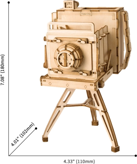 Drevené 3D puzzle Historický fotoaparát vás prenesie do minulosti, zatiaľ čo sa bude skladať do detailného modelu vintage kamery. S vyrezanými laserom pre presnosť a bez potreby lepidla sa stane relaxačnou činnosťou pre každého.