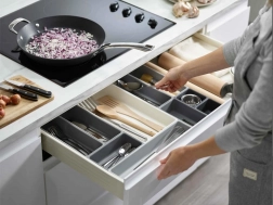 Viac veľkostí priehradiek pojme lyžice, vidličky, nože aj drobné kuchynské pomôcky, aby boli vždy rýchlo po ruke.