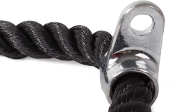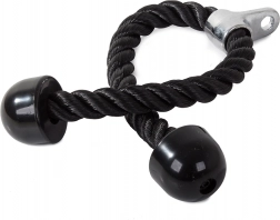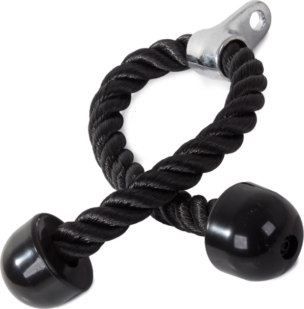 Toto tricepsové lano je vyrobené z husto tkaných nylonových vlákien, čo zaručuje jeho odolnosť a dlhú životnosť. Je navrhnuté pre kulturistické cvičenie paží a brušných svalov, čo z neho robí univerzálny doplnok pre posilňovacie stroje a atlas.