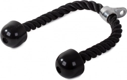 Tricepsové lano je dodávané s gumovými koncovkami pre lepšiu kontrolu a bezpečnosť počas cvičení.