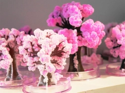 Po zaliatí sa počas niekoľkých hodín vytvoria jemné ružové kryštály, ktoré napodobňujú rozkvitnutú sakuru a premenia jednoduchý stromček na efektnú dekoráciu.