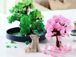 Magický kvitnúci stromček prinesie do vášho domova kúsok jarnej atmosféry počas niekoľkých hodín. Papierová silueta stromu po zaliatí absorbuje roztok a na vetvách sa vytvoria jemné, nadýchané kryštály v odtieňoch ružovej – ako rozkvitnutá sakura. Vďaka priehľadnej miske stromček vynikne na pracovnom stole, poličke aj nočnom stolíku.