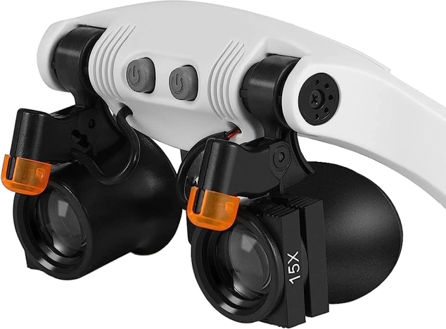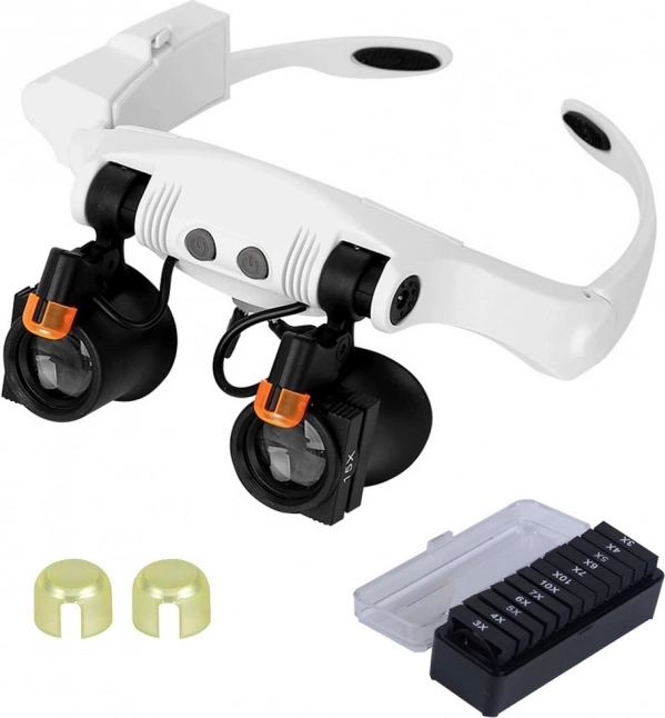 Lupa je vybavená 2 vstavanými LED diódami s nastaviteľným uhlom osvetlenia, poskytujúcimi jasný pohľad aj v tlmenom svetle.