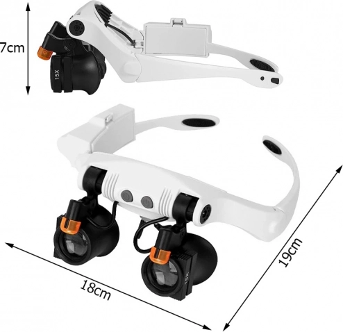 LED osvetlenie je nastaviteľné a celý prístroj je založený na koncepte náhlavných okuliarov, čo zaisťuje pohodlie pri používaní.