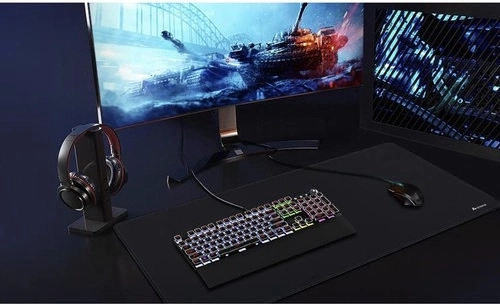 Táto podložka pod myš a klávesnicu kombinuje hladký textilný povrch pre presné snímanie s protišmykovým gumovým spodkom, ktorý drží pevne na mieste aj pri rýchlych pohyboch. Veľký formát 89 × 40 cm zaistí plný rozsah pohybu myši a zároveň ochráni dosku stola pred poškriabaním a rozliatím.