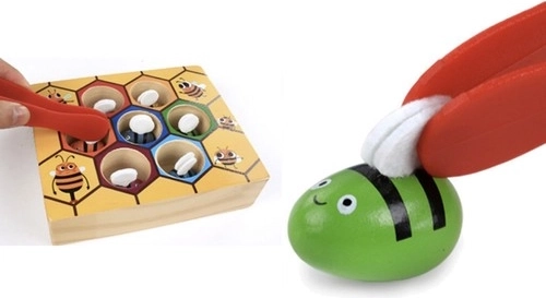 Chytanie včielok za krídelká pomocou pinzety posilňuje pršteky, zlepšuje úchop a koordináciu oko–ruka. Zábavná výzva, ktorá učí presnosti aj trpezlivosti.