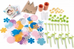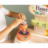Stroj na výrobu kvetov so 104 kusmi príslušenstva poskytuje kreatívnu hru a bohaté vybavenie. Obsahuje nálepky na dekoráciu a prehľadný návod s inšpiráciami. Kvety možno vytvárať z materiálových plátkov, ktoré sú vopred perforované pre ľahšiu prácu malého floristu.