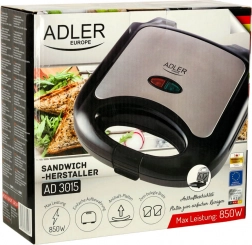 Užite si rýchle raňajky aj večerné desiaty so sendvičovačom ADLER AD 3015. Kompaktné zariadenie s nepriľnavými platňami vytvára dokonale zapečené trojuholníkové toasty bez pripálenia. Svetelné kontrolky vás prevedú od zahrievania až po moment, keď je prístroj pripravený na použitie.