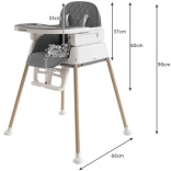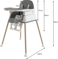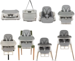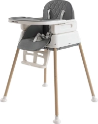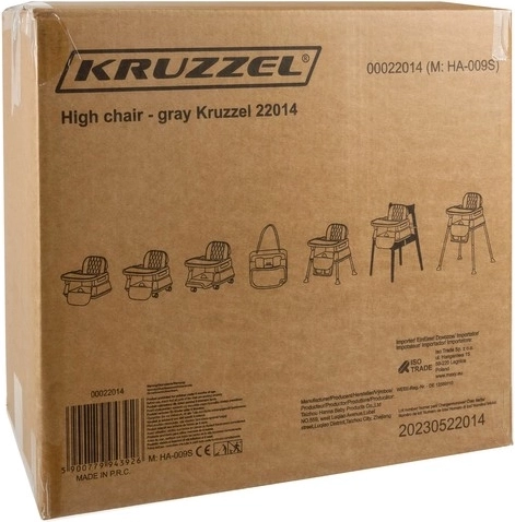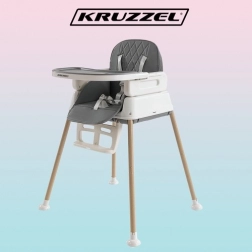 Jedálenská stolička Kruzzel je praktická, vhodná od 6. mesiaca života dieťaťa a rastie spolu s ním. Možno ju konfigurovať ako vysokú stoličku vhodnú na kŕmenie, stoličku pre väčšie deti po demontáži nožičiek a samostatnú stoličku po odstránení stola a pásov.