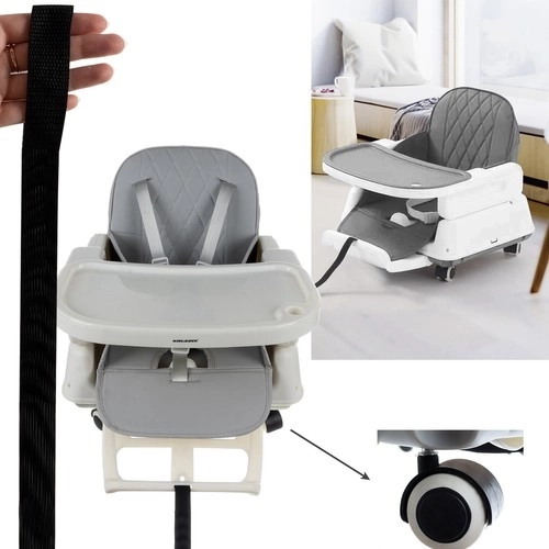 5-bodové bezpečnostné pásy a 4 protišmykové nôžky zaručujú bezpečnosť vášho dieťatka. S našou stoličkou máte istotu, že používate bezpečný a jednoduchý produkt, ktorý zvyšuje komfort vás aj vášho dieťaťa.