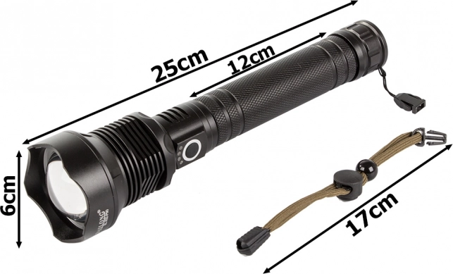 S funkciou plynulého zoomu je možné ľahko upraviť šírku a dosah svetelného kužeľa až na 1000 m, čo zvyšuje jej flexibilitu použitia. Napájaná je modernými dobíjacími batériami pre predĺžený prevádzkový čas.