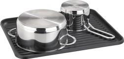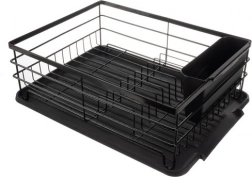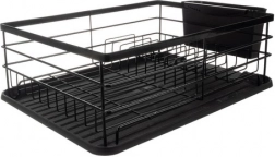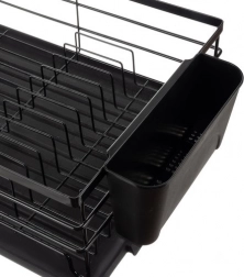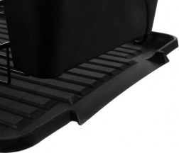 Šikovná odtoková miska s bočným odvodom vedie vodu priamo do drezu, takže na pracovnej doske nezostávajú mláčky. Odnímateľný košík na príbory možno zavesiť na bočné priečky podľa potreby, aby bolo sušenie príborov prehľadné a hygienické. Praktické členenie usporiada taniere, misky aj hrnčeky.