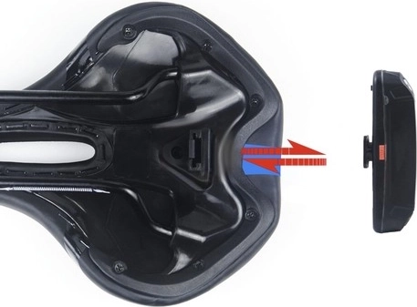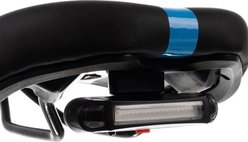 Vstavané svetlo: Sedlo je vybavené zadným svetlom s piatimi režimami svietenia, v červenej a modrej farbe. Svetlo je nabíjané cez USB a dá sa ľahko zložiť na nabíjanie bez potreby zloženia celého sedla.