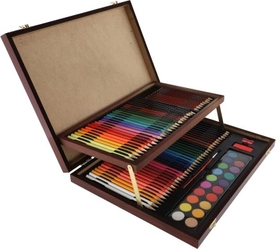 Kreatívna umelecká sada je perfektným riešením pre všetkých, ktorí milujú tvoriť. Vďaka praktickému drevenému puzdru sú všetky pomôcky prehľadne usporiadané a vždy pripravené na použitie.