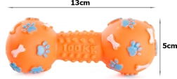 Predstavujeme vám pískaciu žuvaciu hračku v tvare činky, ktorá sa stane obľúbenou súčasťou zábavy vášho domáceho miláčika. Táto dlhotrvajúca a odolná hračka je ideálna pre psy, mačky a ďalšie domáce zvieratá, ktoré potrebujú niečo na zábavu alebo na žuvanie, keď zostanú samy doma.