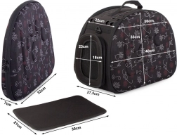 Prepravná taška pre domáce zvieratká ponúka pohodlnú rukoväť pre ľahké prenášanie a nastaviteľný ramenný popruh. Dno s plastovými nožičkami zvyšuje jej odolnosť voči nečistotám.