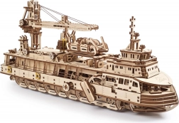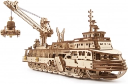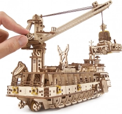 Mechanický model oceánografickej výskumnej lode od UGEARS je precízna drevená stavebnica, ktorá nadchne náročných tvorcov aj zberateľov. Vďaka 575 presne vyrezaným dielikom a vysokej náročnosti si užijete intenzívny staviteľský zážitok s výsledkom, ktorý skutočne ožije – viditeľné časti mechanizmu vám umožnia pozorovať chod pohonu v reálnom čase.