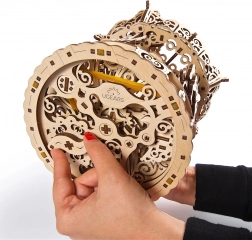 Sledujte prácu ozubených kolies a protibežné otáčanie stredového stĺpu a striešky – mechanika je viditeľná a pritom estetická.