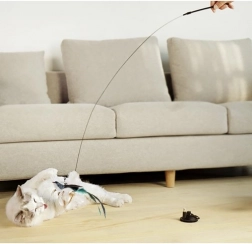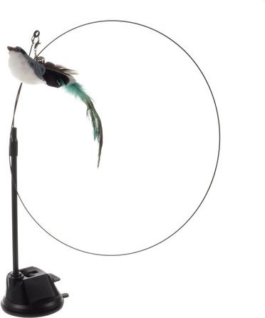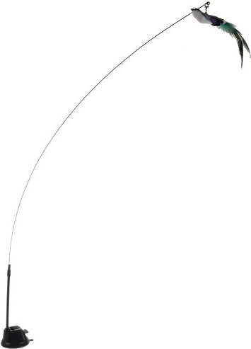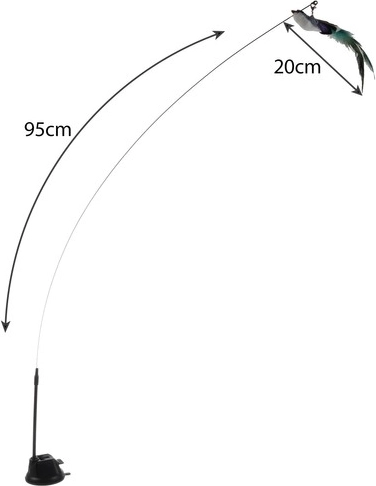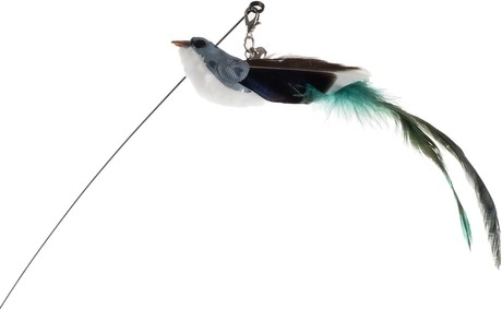Dlhá elastická palička s atraktívnymi prvkami na konci upúta pozornosť mačky a povzbudí ju k skokom a chytaniu. Vtáčik zdobený dlhým perím a jemným zvončekom dodáva na príťažlivosti.