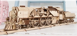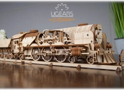 UGEARS V-Express je výnimočná drevená stavebnica pre náročných, ktorá spája čaro klasickej železnice s premyslenou mechanikou. Odhalený „plášť“ lokomotívy umožňuje sledovať chod prevodov, súkolesia a kľukového mechanizmu v akcii. Vďaka natahovaciemu motoru sa model skutočne rozbehne a ponúkne realistický zážitok z jazdy vrátane voľnobehu a spiatočky.