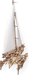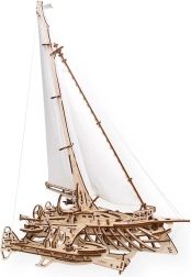 Plachetnica Merihobus od Ugears je elegantný drevený model trimaránu s výrazne realistickým spracovaním. Zvinuteľné plachtovie v žiarivo bielej farbe, funkčné kormidlo a dômyselné ovládanie rahien vytvárajú atraktívnu kombináciu estetiky a mechaniky. Každý diel do seba presne zapadá bez nutnosti lepidla, stavba je preto čistá a zábavná.
