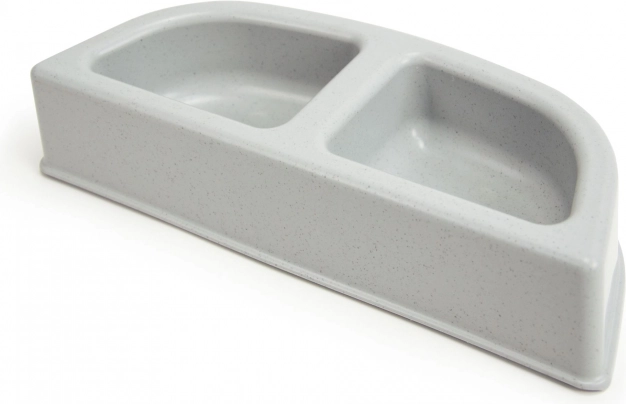 Dvojitá miska Loboo do prepravky Bubble Urban je vyrobená z unikátneho materiálu, ktorý kombinuje plast a mandľové škrupiny. To zaručuje nielen vyššiu odolnosť, ale aj šetrnosť k životnému prostrediu.