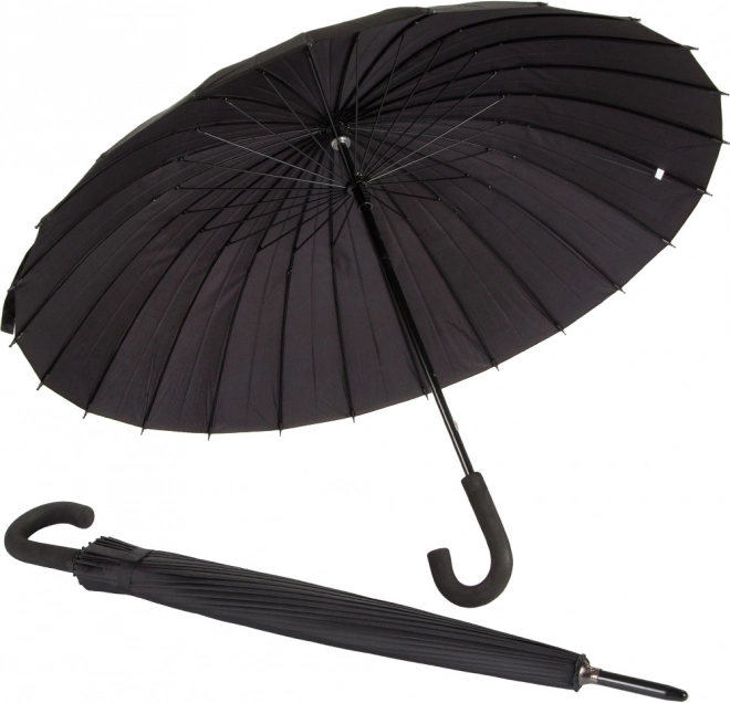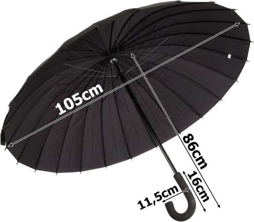 Hľadáte dáždnik, ktorý zvládne silný dážď aj poryvy vetra a pritom bude vyzerať elegantne? Tento veľký čierny dáždnik kombinuje kvalitné spracovanie, odolnú konštrukciu a nadčasový dizajn. Vďaka 24 pružným ramenám z polykarbonátových vlákien je stabilný a spoľahlivý.