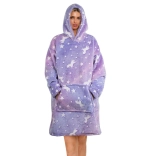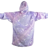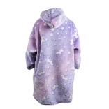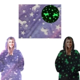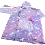 Žiarivá oversize mikina–deka s kapucňou, fialová s jednorožcami