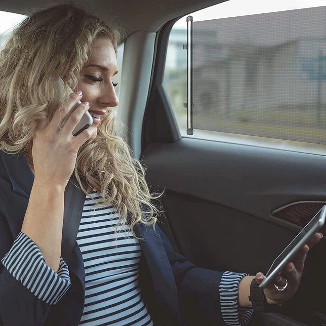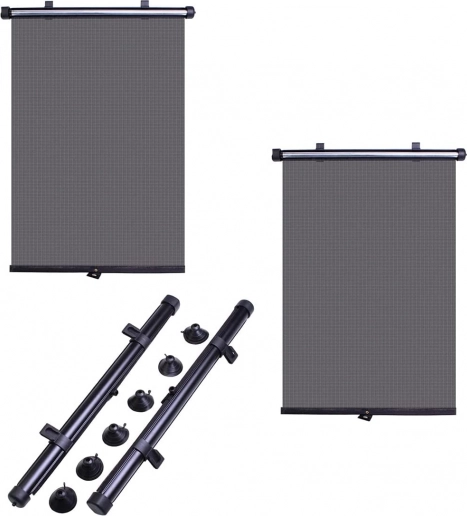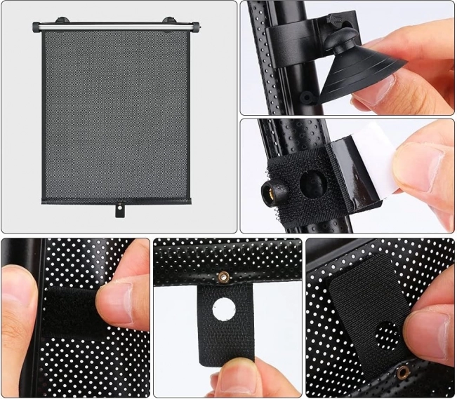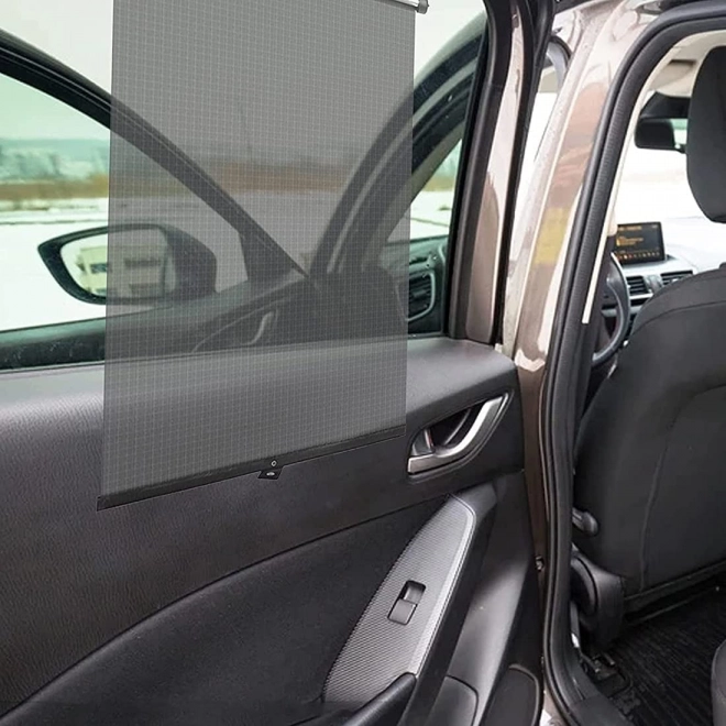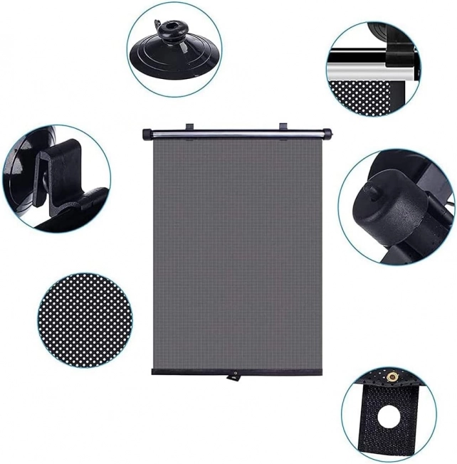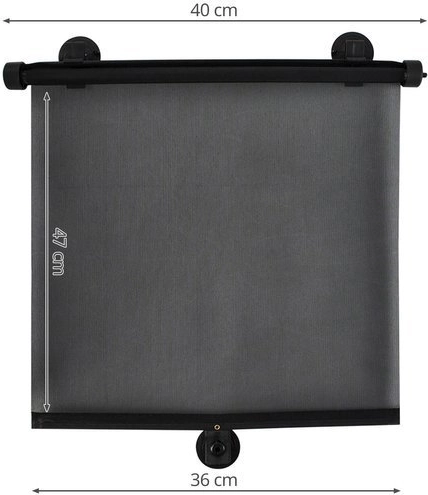 Rolovacia clona do auta - chráni dieťa pred priamym slnečným žiarením. Dá sa jednoducho namontovať: tubus roletky pripevnite k hornému časti okna pomocou dvoch prísaviek. Vytiahnite roletku a pripevnite prísavkou k spodnej časti okna. Ak chcete clonu vytiahnuť, uvoľnite spodnú prísavku a stlačte tlačidlo na pravej strane tubusu.