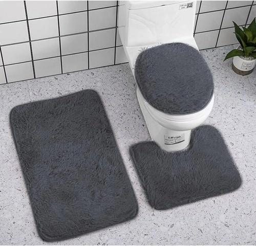 Štýlová kúpeľňová súprava 3 v 1 v sivej farbe prináša mäkký komfort, vysokú savosť a bezpečné protišmykové dno. Obsahuje obdĺžnikový koberec, koberec s výrezom k WC a poťah na veko toalety. Jednoduchá údržba – pranie v práčke na 30 °C.