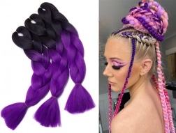 Tento žiarivý fialový ombre štýl je ideálny pre originálne účesy, ktoré môžete meniť podľa príležitosti. Vytvorte oslňujúci vzhľad na festivale, karnevale alebo inej udalosti pomocou týchto univerzálnych copíkov.