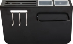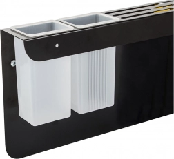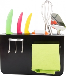 Tri háčiky a dva kontajnery pre ľahké usporiadanie nožov a kuchynských nástrojov.