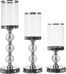 Ozdobte svoj domov elegantnou sadou 3 svietnikov Glamour. Každý svietnik je vyrobený z kombinácie kovu a skla, čo zaručuje vysokú kvalitu a estetiku.