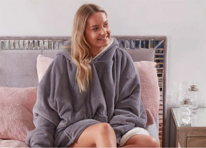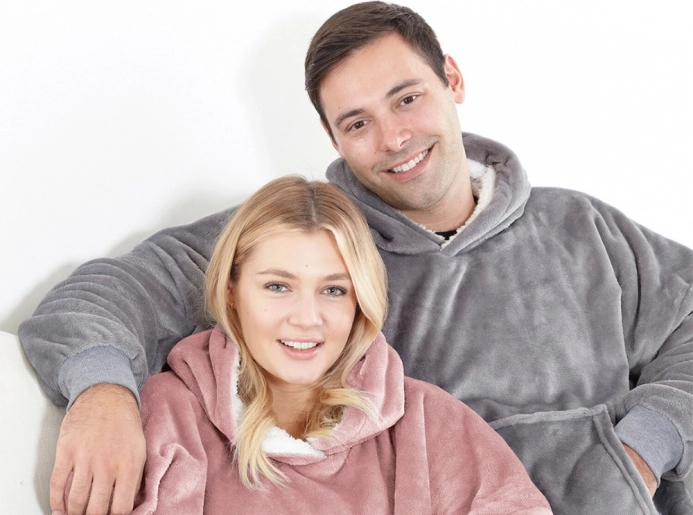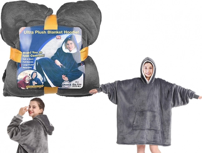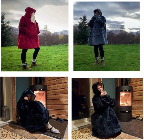 Užívajte si maximálne pohodlie s touto hrejivou oversize deka-mikinou. Ideálna na chladné večery doma, táto deka-mikina poskytuje teplo a voľnosť pohybu vďaka veľkorysým rukávom.