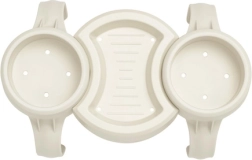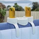 Šikovný doplnok pre pohodové chvíle vo vírivke: dvojitý držiak nápojov so stredovou táckou. Ponúka dve kruhové priehradky na poháre, plechovky či fľaše a uprostred praktické miesto na drobnosti – okuliare, smartfón alebo malé pochutiny. Odolné prevedenie z PP/ABS materiálu je pripravené na vodu aj slnko.
