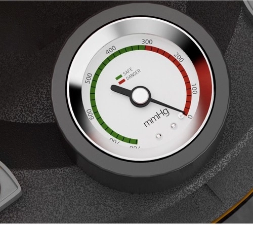 - Manometer umožňuje sledovať tlak až do 760 mmHg, čo zaisťuje maximálnu bezpečnosť počas použitia.