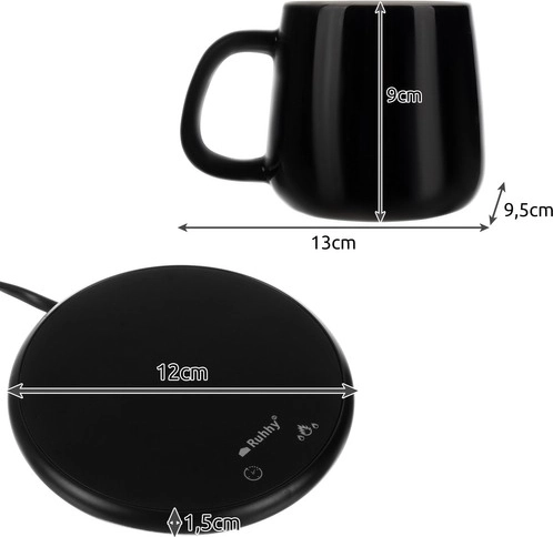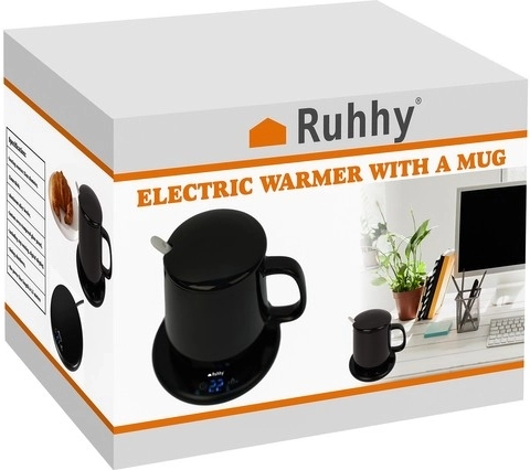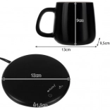 ŠPECIFIKÁCIA- farba: čierna + biela; materiál šálky, veka a lyžičky: keramika; materiál podstavca: tvrdené sklo + hliníková zliatina; vodotesnosť: áno; časovač: áno; 2 programy ohrevu: 1: 40 °C, 2: 60 °C; menovitá frekvencia: 50-60 Hz; objem šálky: 400 ml; rozmery šálky: 13 x 9,5 x 9 cm; rozmery ohrievača: 12 x 1,5 cm; príkon: 18 W; napätie: 220 V; dĺžka kábla: 130 cm; hmotnosť: 627 g; hmotnosť v balení: 865 g