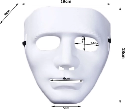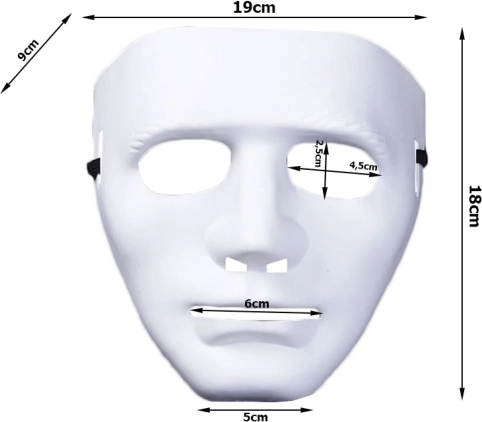 Vďaka kompaktným rozmerom 19 × 18 × 9 cm je maska ľahko prenosná a pripravená doplniť váš halloweensky či hororový kostým. Minimalistická biela farba umožňuje ľahké ladenie s rôznymi doplnkami a oblečením.