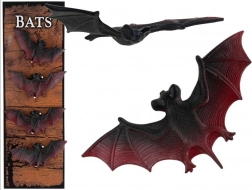 Vytvorte strašidelnú halloweenskú atmosféru behom chvíľky! Táto sada 4 realistických netopierov z odolného plastu/gumy je ideálna na výzdobu domu, záhrady aj párty. Jednoducho ich zavesíte na vetvu, pavučinu či policu a získate efektné dekorácie s výraznými čierno‑červenými krídlami.
