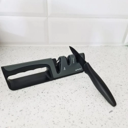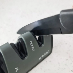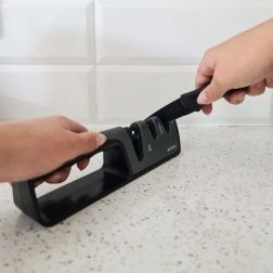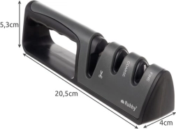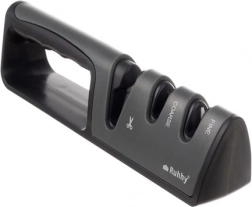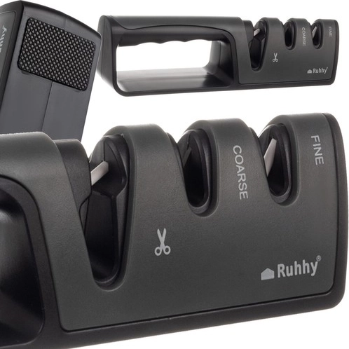 Praktický 3-fázový brúsik RUHHY obnoví ostrie vašich kuchynských nožov aj nožníc počas pár ťahov. Prvý slot je určený pre nožnice, druhý na hrubé prebrúsenie poškodeného ostria a tretí na jemné doostrenie a vyhladenie. Stabilná konštrukcia s protišmykovými nožičkami a ergonomickou rukoväťou zaisťuje pohodlné a bezpečné používanie.