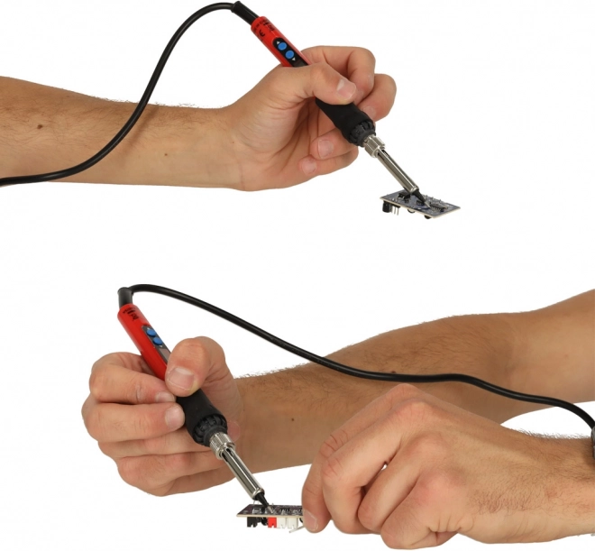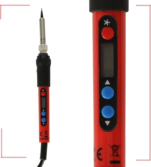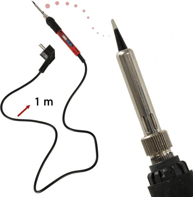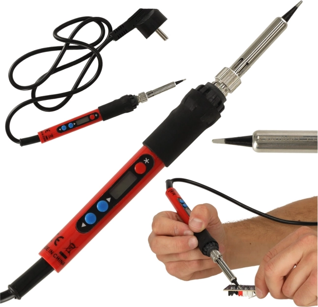 - Regulácia teploty: Možnosť nastavenia teploty pomocou intuitívnych tlačidiel „+“ a „-“ vám umožňuje prispôsobiť výkon lutovačky požiadavkám konkrétnej práce. LCD displej zobrazuje nastavenú teplotu s presnosťou na 1°C.