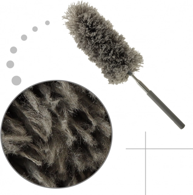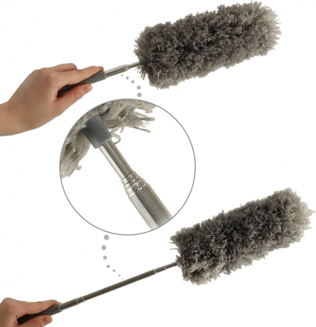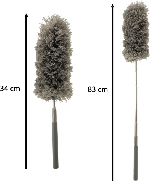 Prachovka s teleskopickou rukoväťou ponúka riešenie pre rýchle a efektívne odstránenie prachu z akéhokoľvek povrchu. Vďaka svojej predlžovacej konštrukcii, ktorú možno natiahnuť až na 83 centimetrov, ľahko dosiahne na vysoké a vzdialené oblasti, bez potreby rebríka.